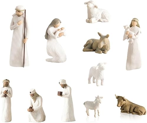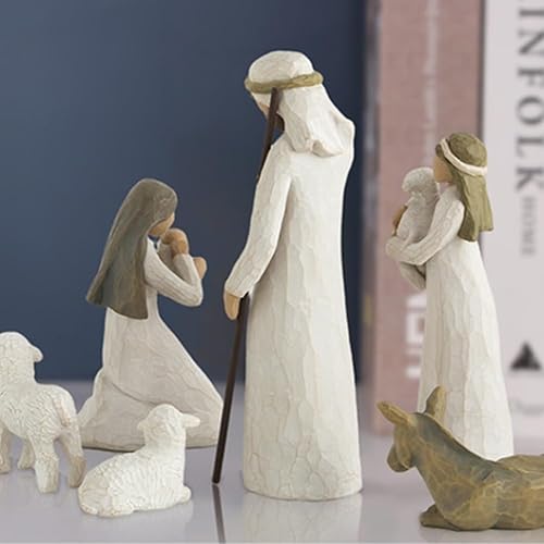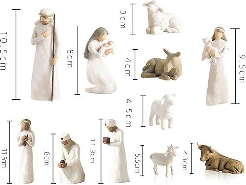 Tagtight 10Pcs Statue de Nativité du Christ, Figurines liées à la Nativité, Ensemble Scène des la Nativités, Figurines de Crèche des Noël, Petit Jésus Manger Décoration D'église Miniature