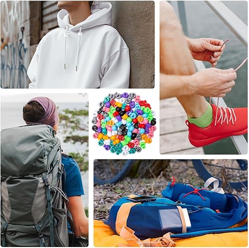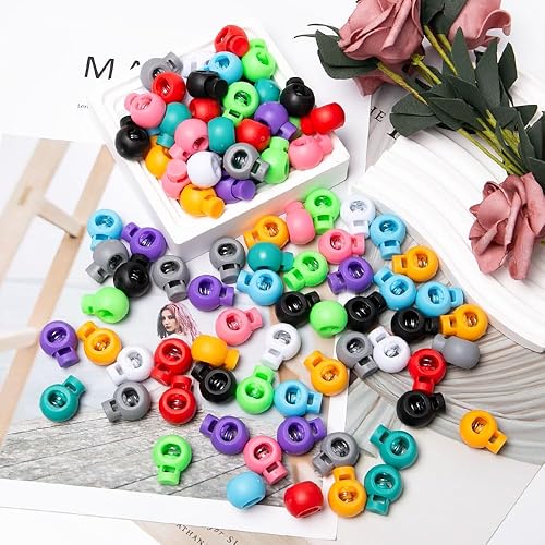 Rebanky 100 Pièces Bouchon de Cordon Plastique 8mm Arret de Cordon Coloré Cordon de Verrouillage à Trou Unique Stop Cordon Serrure de Cordon Rond pour Lacets,Vêtements et Sacs à Dos,10 Couleurs