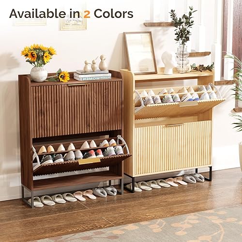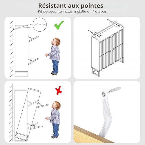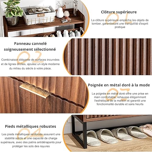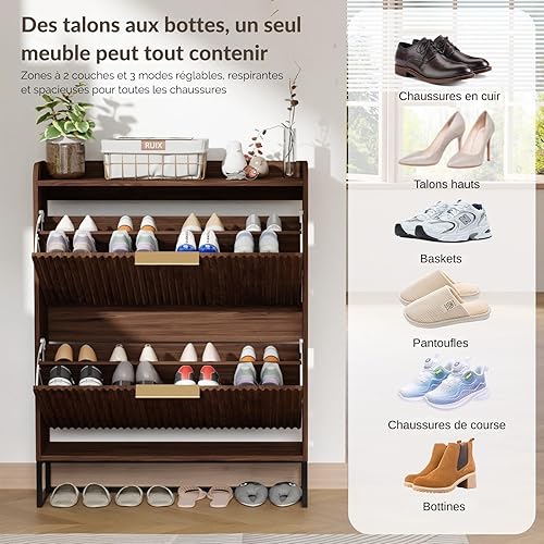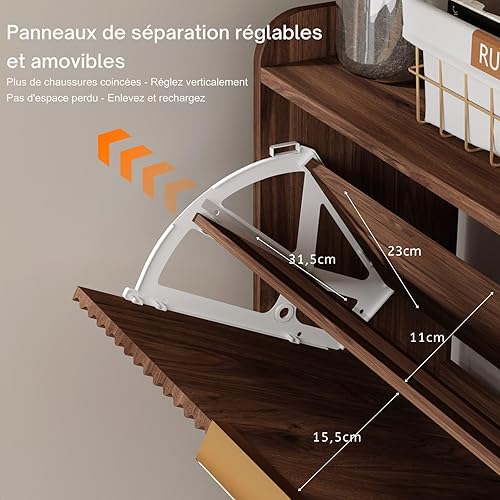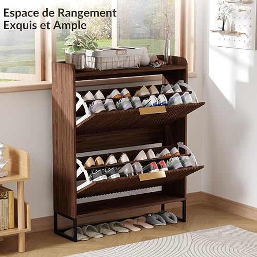LEADZM Meuble à Chaussures 2 Portes Battantes Étroit, Étagère à Chaussures, Séparateur Réglable, 17 à 19 Paires, pour Petite Entrée, Salon, Chambre, 80 x 24 x 101 cm (Noyer)