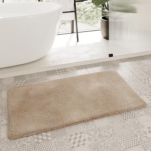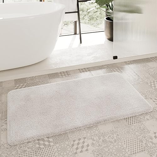 Homie Living Porto Azzurro Tapis de bain douillet à poils doux - Antidérapant et lavable - 80 x 150 cm - Ivoire