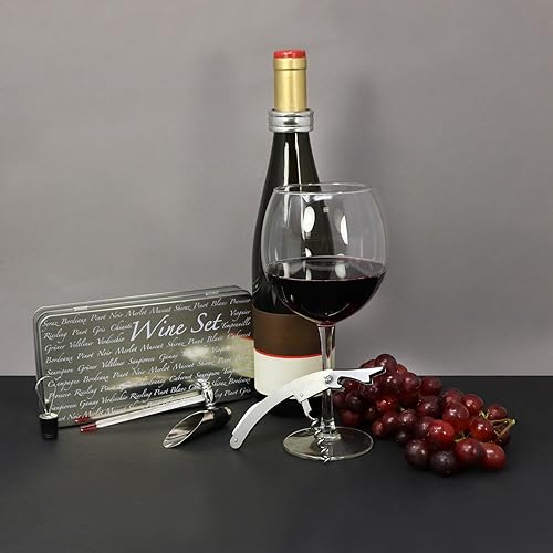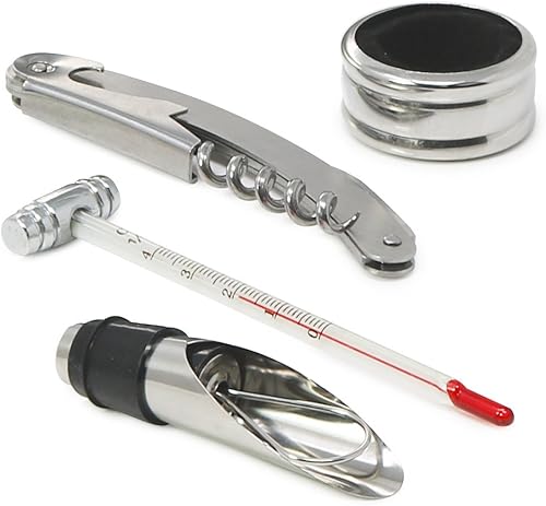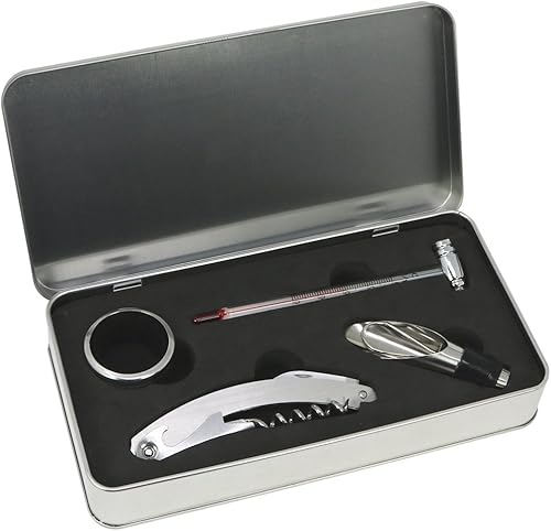 COM-FOUR® Coffret de départ pour sommelier 4 pièces, coffret cadeau dans une boîte en métal fine pour les amateurs de vin - ouvre-bouteille avec tire-bouchon (04 pièces dans un coffret cadeau)