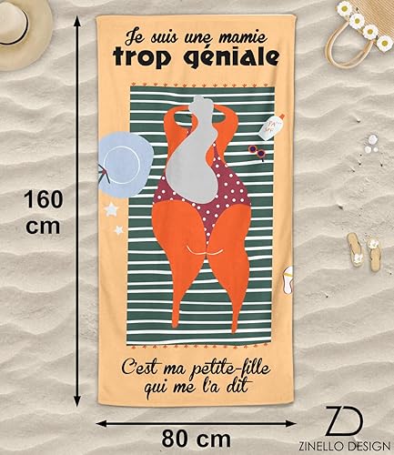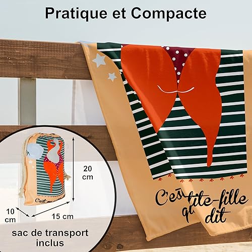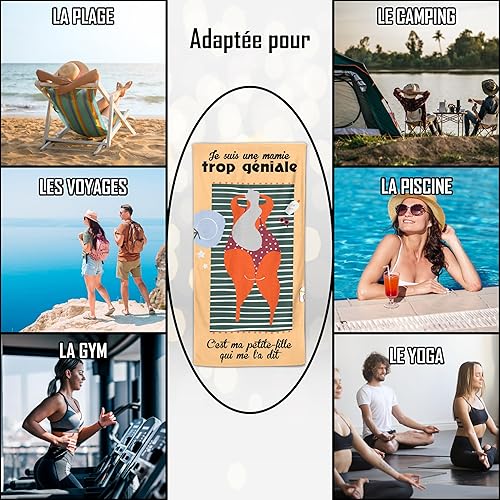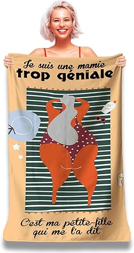 Serviette de Plage Microfibre Personnalisée avec Message Humoristique. Drap de Plage 160x80cm Ultra Absorbant, Séchage Rapide, Léger et Compact. Idée Cadeau Femme, Fête des Grand-Mères Noel