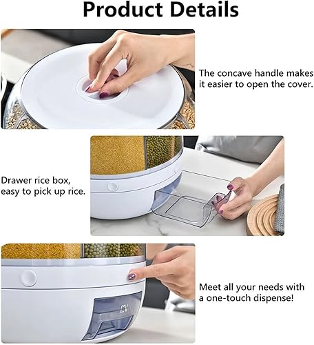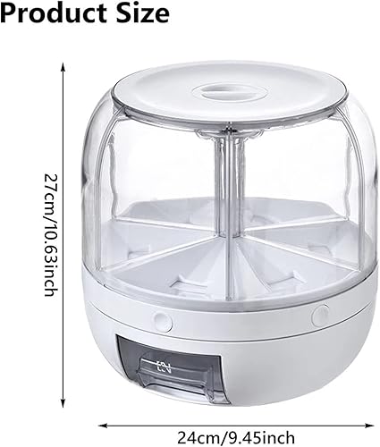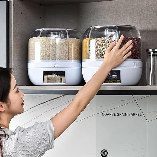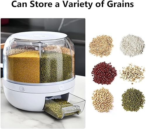 Distributeur de Céréales,360° Distributeur d'aliments rotatif à 6 grille,Récipient de stockage de riz transparent avec couvercle hermétique et tasse de riz,Pour le stockage des grains ,13 livres