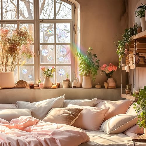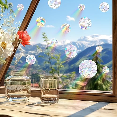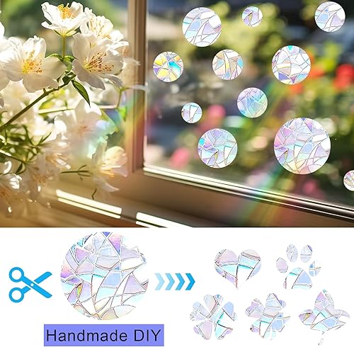 DARENYI 39Pcs Suncatcher Sticker, Autocollants Anti-collision pour Oiseaux de Fenêtre,Suncatcher Sticker Fenetre pour Décoration de Fenêtre Anti - oiseaux