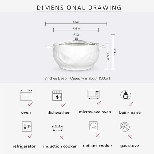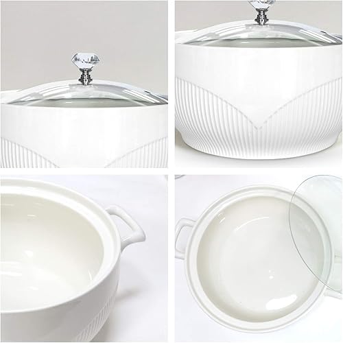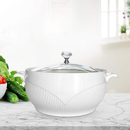 ABHOME Soupière en Céramique Avec Couvercle en Verre - Porcelaine pour Restaurant, Maison, Cuisine - Décoration Mignonne pour Soupe