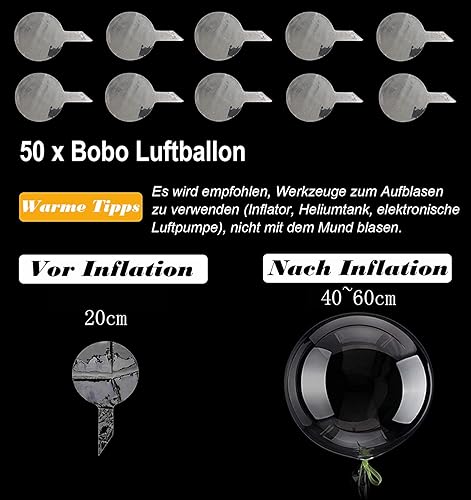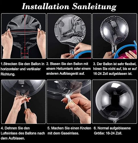 10 Pièces Ballons Transparents à Bulles, Ballons Bobo de Fête Réutilisables, Peut être rempli de confettis, d'hélium, LED (16 pouces~24 pouces)