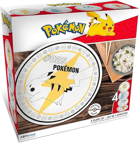 ABYSTYLE - POKEMON Set de 4 Assiettes Starters + Pikachu