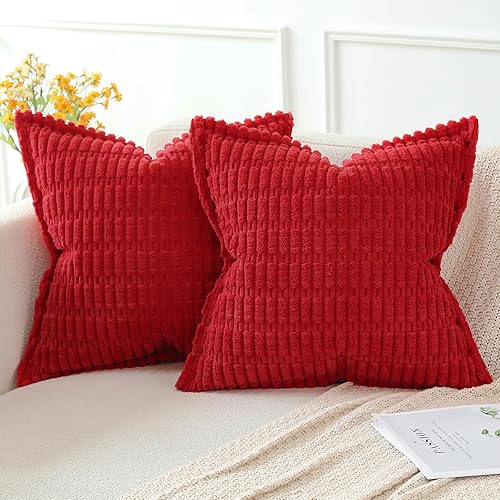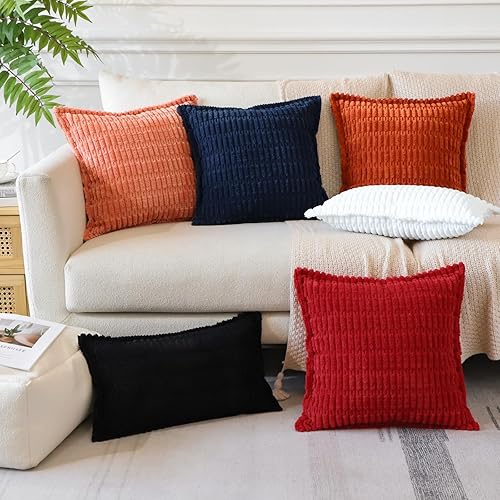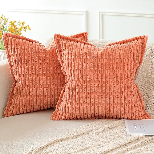 Artscope Lot de 2 Housses de Coussin en Velours Côtelé Rayé Boho Canapé Taie d'oreiller en Velours Douce pour Maison Salon Chambre Decorative Orange 30 x 50 cm