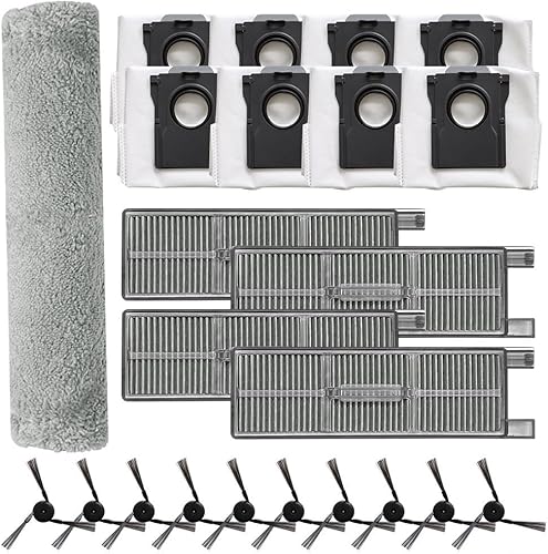 Ensemble de pièces de rechange pour aspirateur robot Mova Z5 / Z5 Pro / Z50 Ultra / Z50 – Comprend 1 chiffon, 2 filtres, 4 sacs à poussière, 4 brosses latérales (A)
