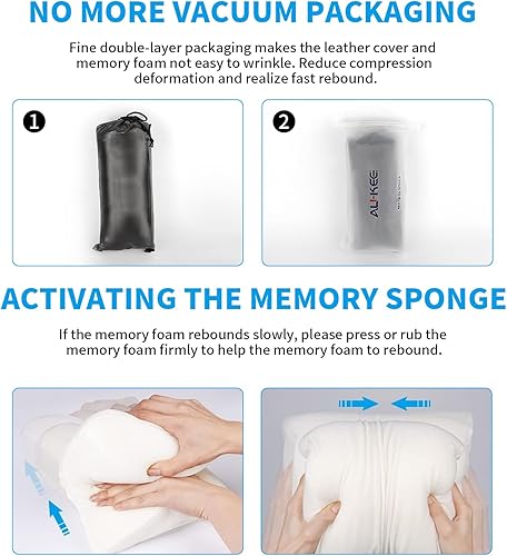 Aukee Coussin de Nuque en Mousse à mémoire de Forme en Cuir Souple pour Voiture, Voiture, Voiture, Bureau, Noir (1 pièce)