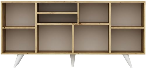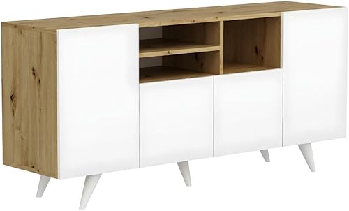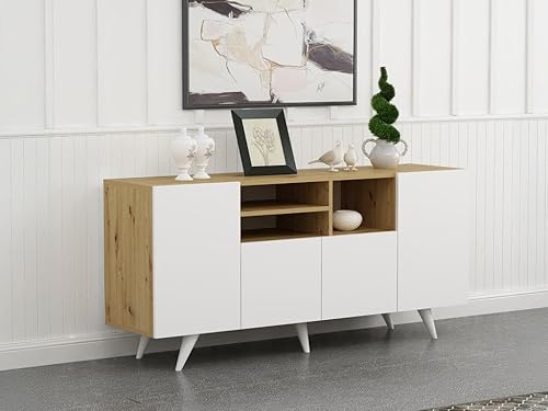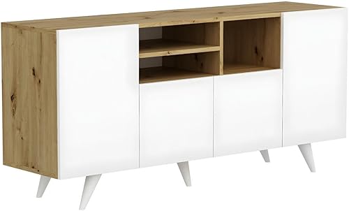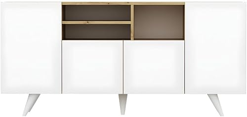 Vente-unique - Buffet avec 4 Portes et 3 niches - Blanc et Naturel - MOSTIA