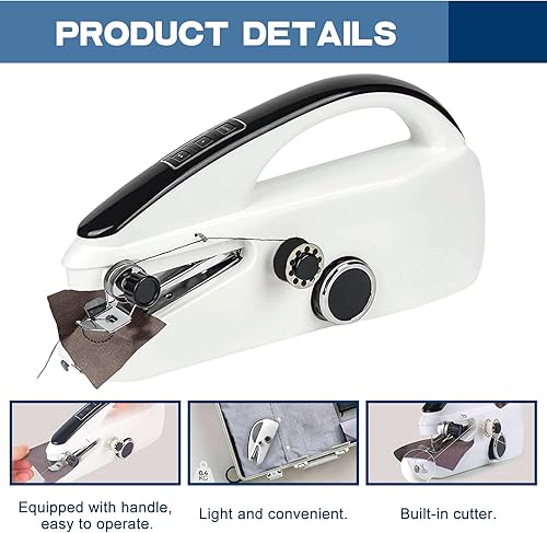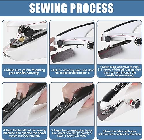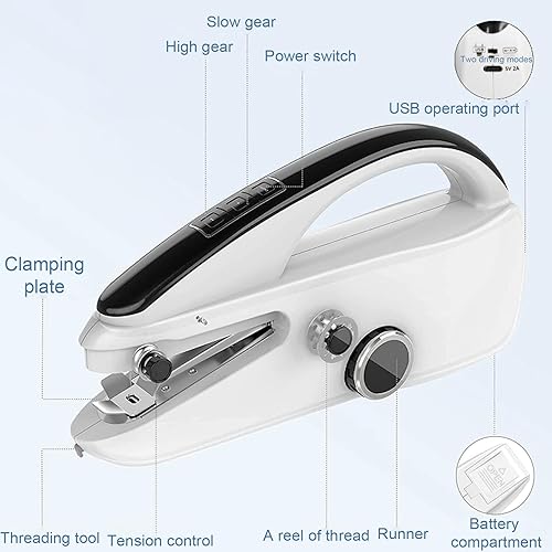 Machine à coudre manuelle - Machine à coudre électrique portable avec outil de couture - 2 modes - Rechargeable par USB - Mini machine à coudre domestique pour tissus, vêtements, voyages à la maison