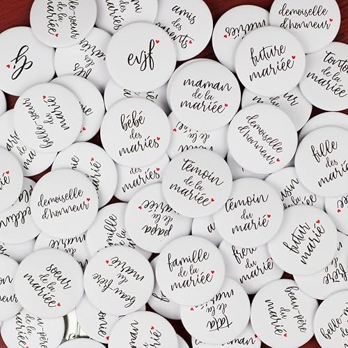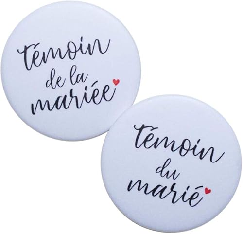 Bestdayever Lot de Badges Témoins Accessoire Mariage - Collection Calligraphie (1 Témoin de la mariée + 1 Témoin du marié)