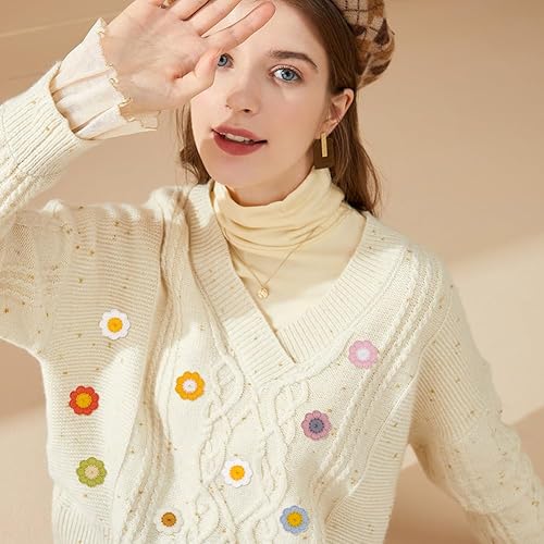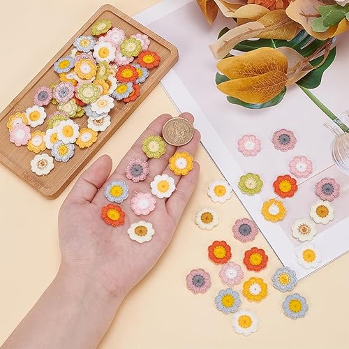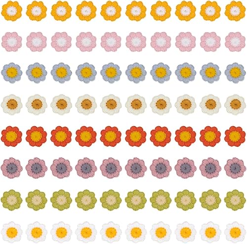 MAYJOYDIY 80 pièce 8 couleurs de Patchs à Coudre au Crochet en Forme de Fleur en Laine de 20mm Patchs à Appliquer Soi Même Embellissements Fleurs au Crochet pour Vêtements Robes Jeans Vestes Chapeaux