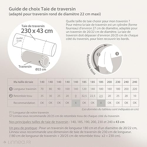 Linnea Taie de traversin uni 230X43 cm 100% Coton Alto Calcium
