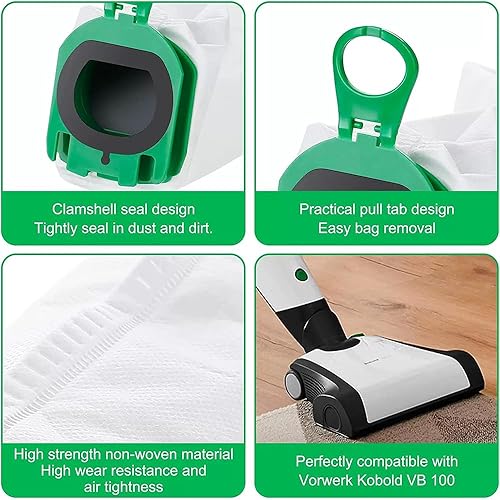 Lot de 8 sacs d'aspirateur pour Vorwerk Kobold VB100 VB 100 FP100 FP 100 - Accessoires de rechange compatibles avec Vorwerk VB100