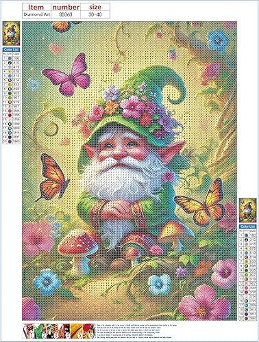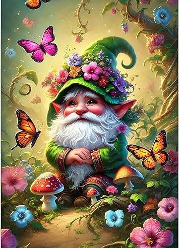 GDYEEH 5D Vieil Homme Peinture Diamant Painting Kit, DIY Gnome Papillon Art du Diamant Complet Kits, Diamond Art Kits Strass Point de Croix Painting pour Adultes Débutants Maison Décor 30x40 cm