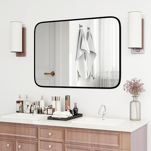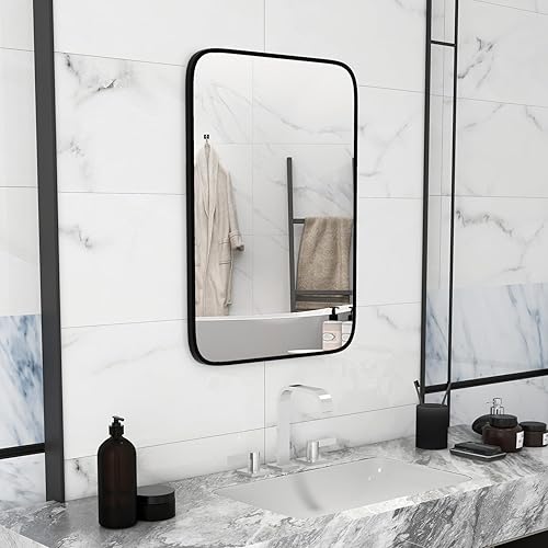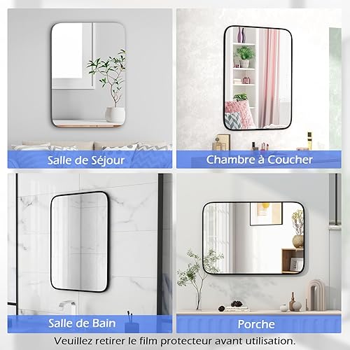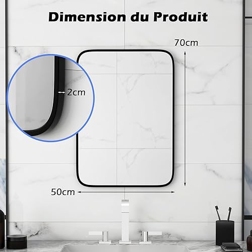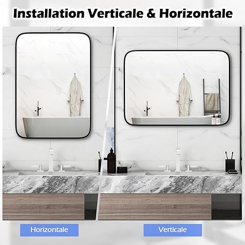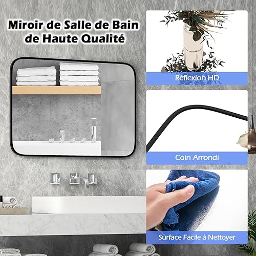 COSTWAY Miroir Salle de Bain 70 x 50 cm, Miroir Mural Rectangulaire, Miroir Maquillage, Cadre en Aluminium, Grand Miroir Mural pour Salle de Bain, Salon, Entrée, Montage Vertical Horizontal