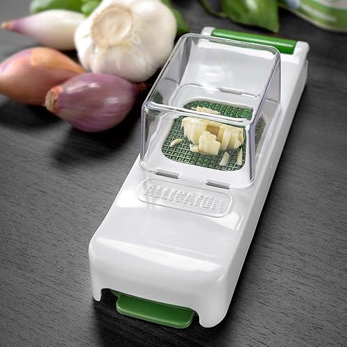 ALLIGATOR 3080 - Mini Hachoir Multifonction Avec Bac Collecteur - Coupe Légumes - Coupe Oignon - Lame 3x3 mm - Sans BPA - Blanc et Vert