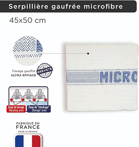 LNT France - Lot de 3 serpillères Gaufrées Microfibres 45x50 cm, très absorbantes, ne peluchent Pas, pour Tous Types de Sol, Fabriqué en France.