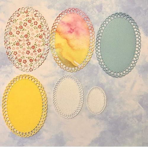 Matrices de découpe ovales en métal avec cadre festonné - Pochoirs ovales pour loisirs créatifs, cartes, gaufrage, fabrication de cartes, photos, décoration, scrapbooking