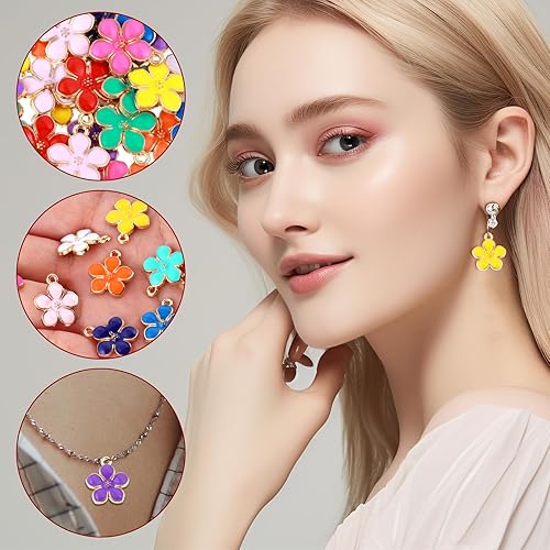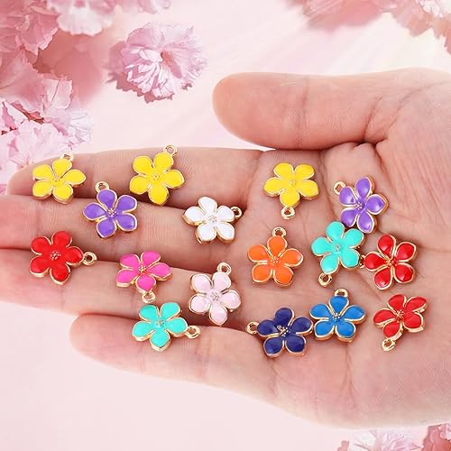 Thinp Lot de 40 pendentifs en forme de fleurs en émail, motifs floraux colorés, petites fleurs de cerisier, breloques en émail, pour la fabrication de colliers, boucles d'oreilles, bracelets, bijoux