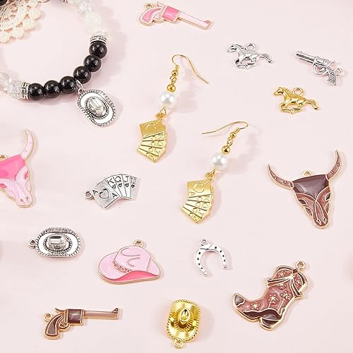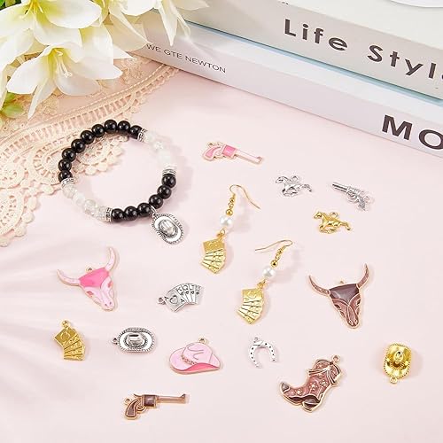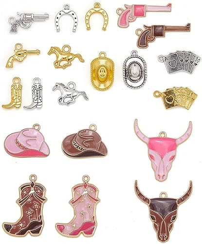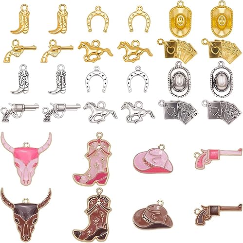 SUNNYCLUE 1 boîte de 80 breloques de Style Western 20 styles en Alliage Métallique Rose Marron Argent Or Chapeau Cheval Fer à Cheval Pendentifs pour la Fabrication de Bijoux Boucles D'Oreilles Collier
