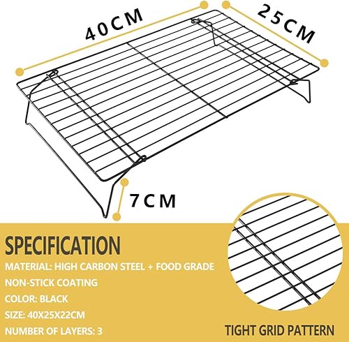 Somine Grille de refroidissement à 3 niveaux pour la cuisson - Anti-adhésive et empilable - Plateaux de refroidissement pliables pour gâteaux à pain, biscuits, gâteaux et pâtisseries - 40 x 25 x 22 cm