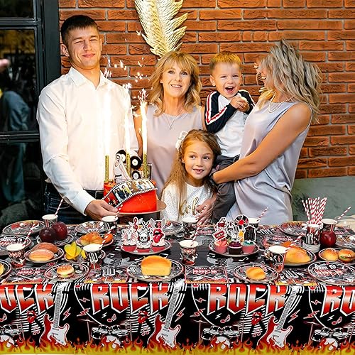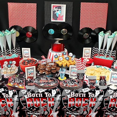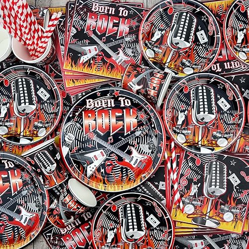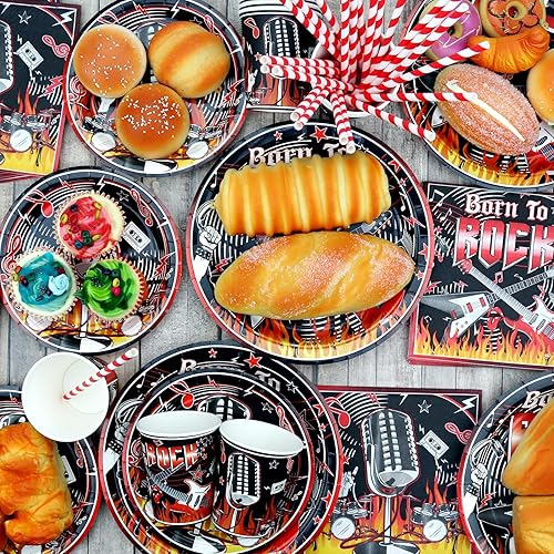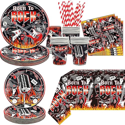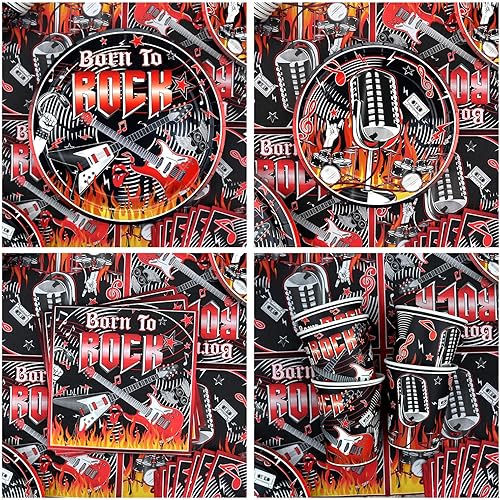 Fournitures de fête Rock and Roll, y compris assiette, serviettes, nappe, pailles, pour décorations de fête sur le thème de la musique rock pour 20 invités