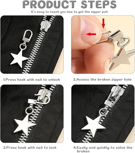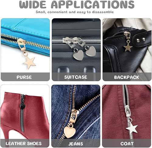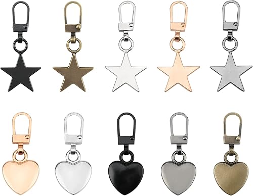 Bekecidi Lot de 10 Tirettes de Rechange Amovibles en Métal Languette de Réparation de Fermeture Éclair Kit de Curseur de Remplacement pour manteau, veste, sac à dos, sacs à main (étoile, cœur)