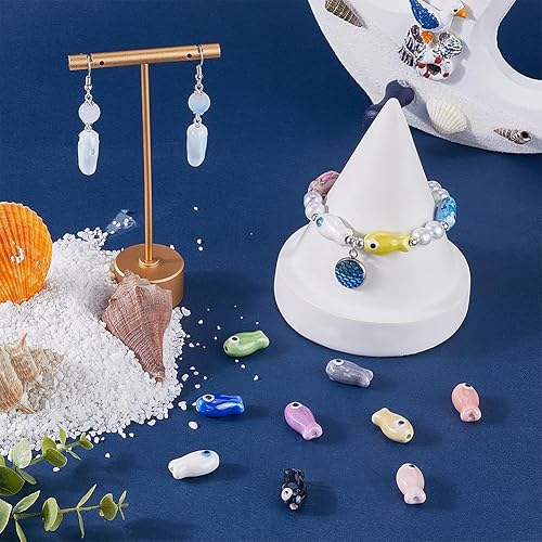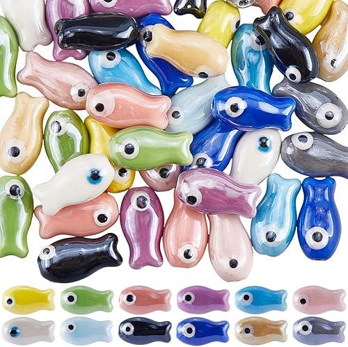 SUNNYCLUE 1 boîte de 48 perles en Céramique de 12 couleurs Perles de Poissons Tropicaux Océan Mer Marine Brillant Émaillé Coloré Mignon en Porcelaine pour la Fabrication de Bijoux Fournitures de Brico