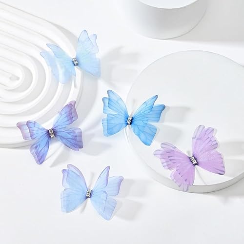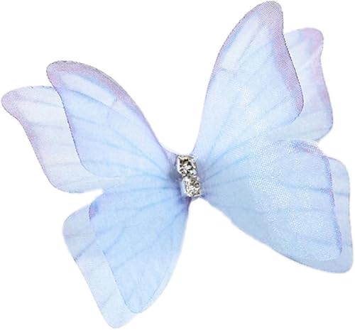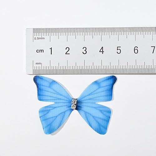 Lot de 100 appliques en tulle 3D double couche avec broderie papillon en dentelle pour bricolage, artisanat, accessoires de cheveux, décoration de vêtements, bleu ciel