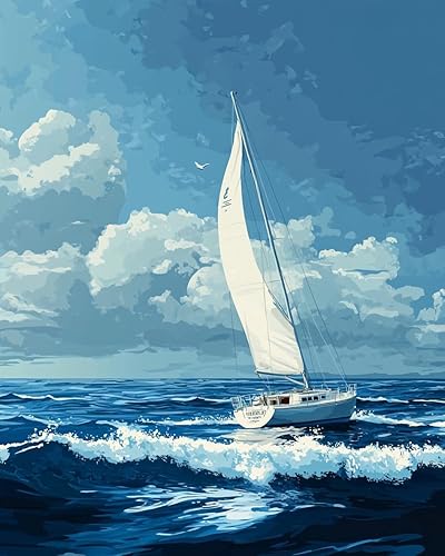 Canevas Broderie Point De Croix Kit Complet Adulte Debutant Compté Pré Imprimé Estampillé Moderne Débutant Avec Fils, Voilier Sur La Mer 40X50Cm Point De Broderie Précis Imprimés Motif Du Po