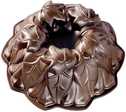Nordic Ware - Moule à gâteau, moule à pâtisserie au design élégant - Moule à gâteau Bundt Feuilles d'automne Bronze - Revêtement antiadhésif - Fonte d'aluminium