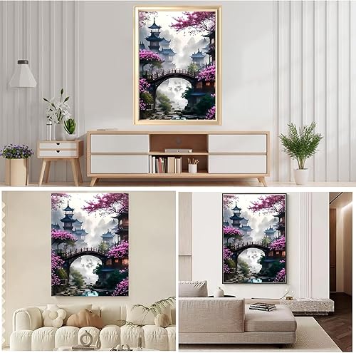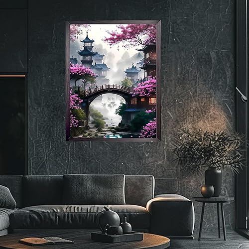 Mincloss Peinture diamant pour adultes, kit de bricolage, Sakura 5D Diamond Painting Paysage DIY Peinture diamant pour décoration murale de la maison 30 x 40 cm