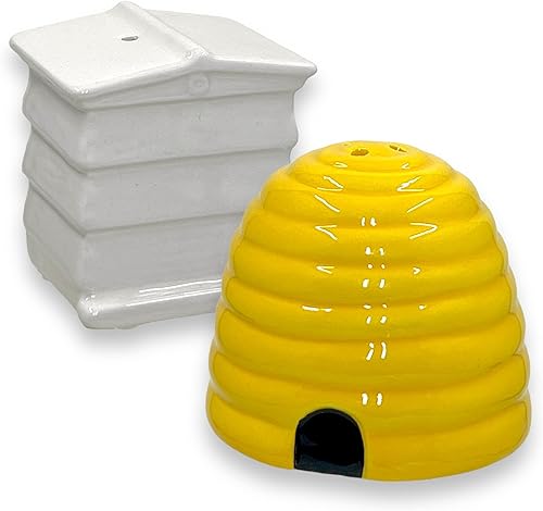 Ensemble salière et poivrière en céramique au design rucher - Panier d'abeilles