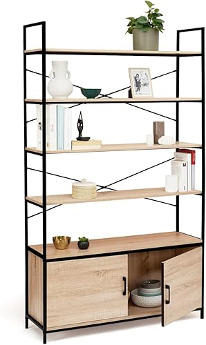 IDMarket - Etagère XL 5 Niveaux avec Placard Detroit Design Industriel 170 CM