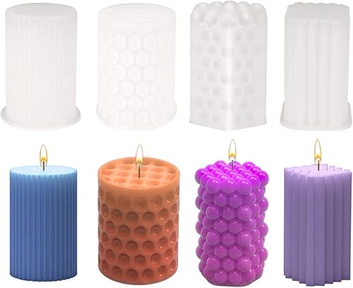 Bubuny Lot de 4 Moule en Silicone pour Bougie pour la fabrication de bougies en résine époxy, moules cylindriques pour la fabrication de bougies 3D pour Bougie parfumée Savon