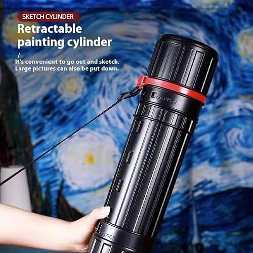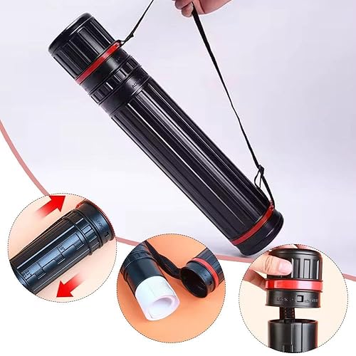 Tube télescopique extensible de 63,5 cm à 109,2 cm, tubes de rangement avec sangle, imperméable et résistant à la lumière, étui de rangement de protection pour artistes, architectes, voyages (B noir)