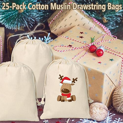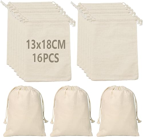 Coriver 16 Pièces Pochon Tissu, 13 x 18 cm Petits Sachet Tissu avec Cordon, Reutilisable Sacs Cadeaux à Remplir,Pochette Bijoux Sac Coton pour Noël Bricolage Calendrier de l'avent Anniversaire Mariage