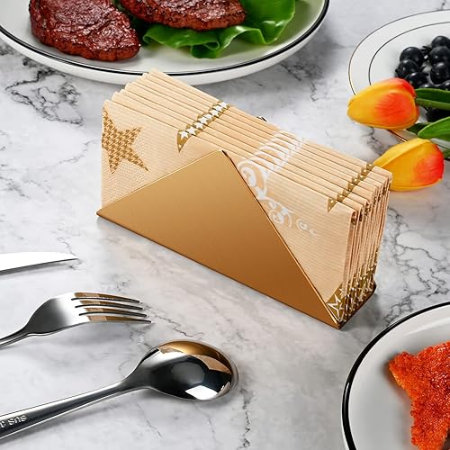 Lot de 2 porte-serviettes en acier inoxydable doré, porte-serviettes triangulaire minimaliste en métal, organisateur de distributeur de serviettes de cocktail.