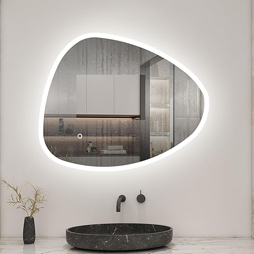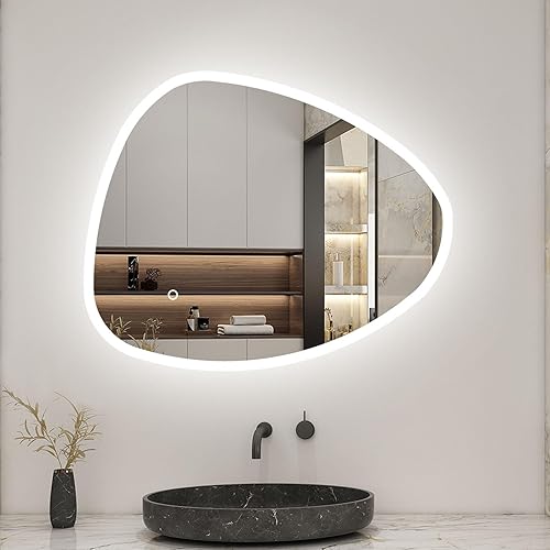 AICA Miroir Salle de Bain 80x65cm, Miroir Lumineux avec 3 Couleurs + Dimmable + Anti-buée,Miroir Mural Interrupteur Tactile Étanche