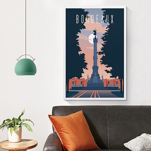 AFFICHE BORDEAUX, Place des Quinconces - Impression sur toile de Vitger - Décoration d'intérieur rustique pour chambre à coucher, bureau - 20 x 30 cm