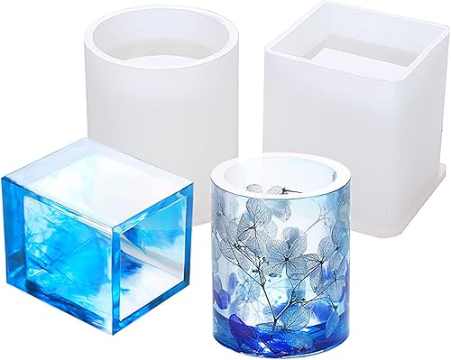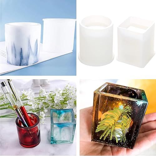 Epoxy Casting Mold Moule rond en silicone pour porte-stylo carré Moule de moulage de pot de fleurs en résine bricolage pour pot de fleur en résine époxy porte-stylo artisanat bijoux en cristal 2pcs