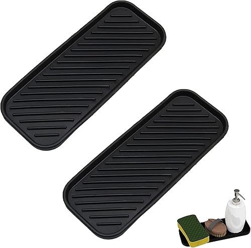 Eabdice 2 Pièces D'éponge et Porte-Savon, Support D'évier de Cuisine en Silicone, Silicone avec Canal de Drainage Antidérapant, Adapté au Plateau de Rangement de la Salle de Bain (Noir)