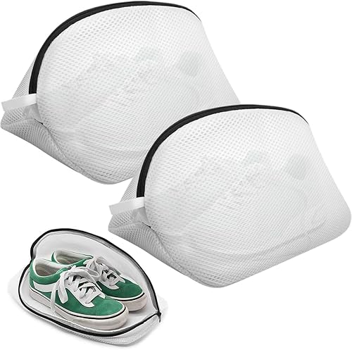 QEDBOJE 2 Pièces Filet à Chaussures, Sac à Chaussures pour Machine à Laver avec Fermeture Éclair, Sac à Linge, Sachet à Linge, Sac à Chaussures pour Sneakers, Chaussettes (42 x 24 x 26 cm)