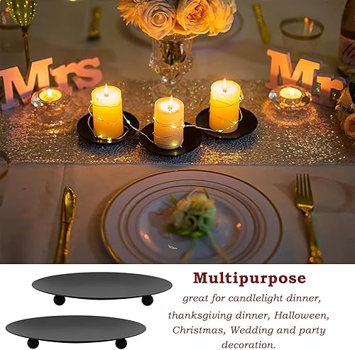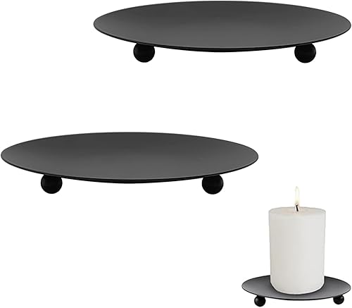 2 Pièces Bougeoirs, Assiette de Bougie, Bougeoir en Métal, Assiettes à Bougies en Fer, Bougeoir Pilier Plateau, pour Mariage Noël Dîner Aux Chandelles Décor À Maison