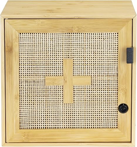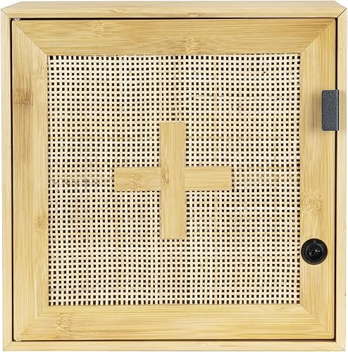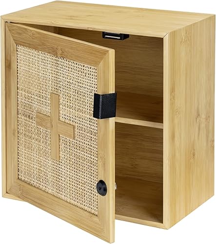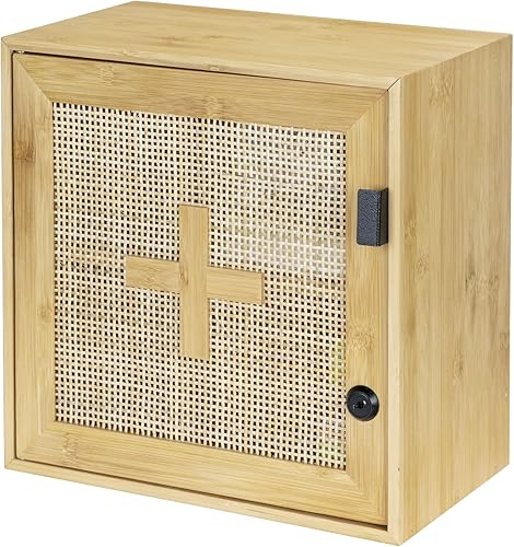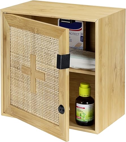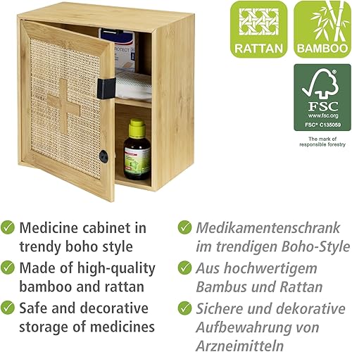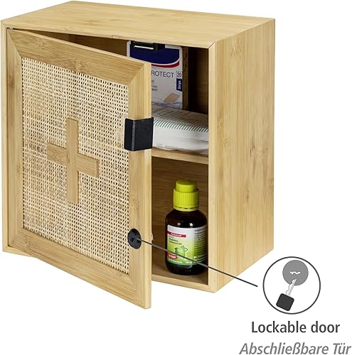 WENKO Allegre Armoire à médicaments verrouillable en Bambou et rotin tressé Style bohème avec Fixations 30 x 30 x 17,8 cm Naturel
