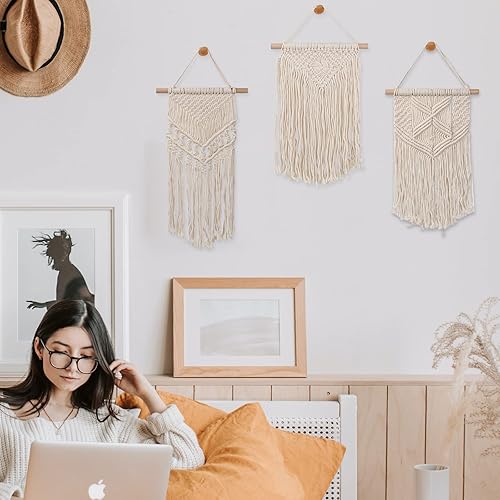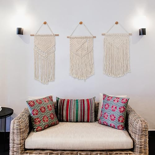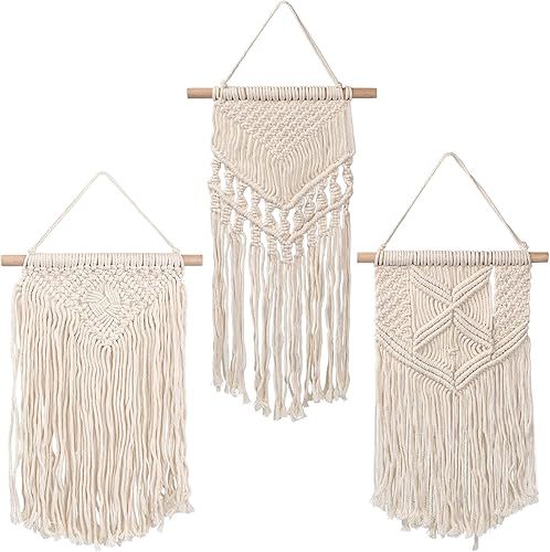 3 Pièces Petite Macramé Tenture Murale, Tissée Tapisserie Bohème Deco, Tapis Mural en Macramé Mini, Tenture Murale en Coton pour Décoration d'Intérieur, Maison, Chambre, Café