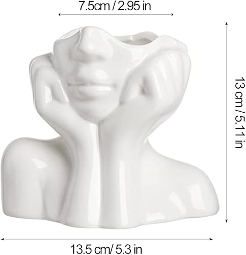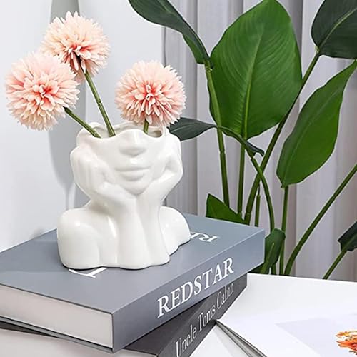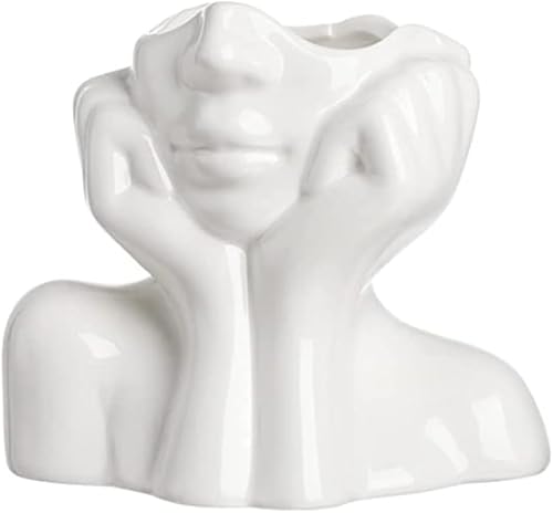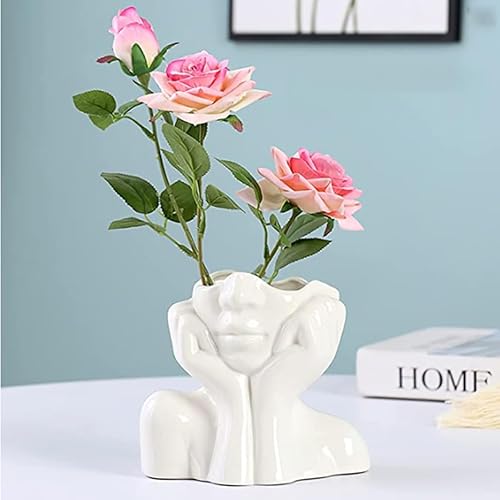 fanquare Vase avec Visage Blanc Brillant 14cm, Vase Moderne en Porcelaine Humaine pour la Décoration de la Maison, Vase en Céramique Unique pour Les Fleurs